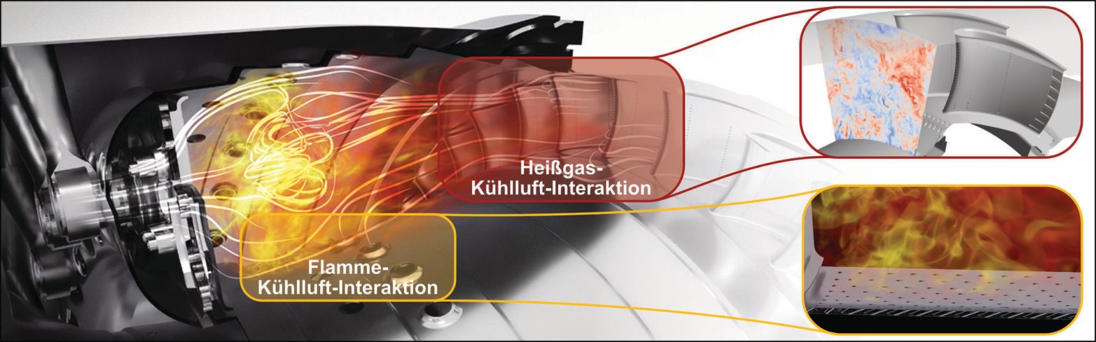 To improve understanding of the thermodynamic and aerodynamic effects of hot-gas flows on film-cooled turbine components and to develop LES wall models that capture these effects reliably. Selected DNS will be performed for complex boundary layers, providing reference data for wall-resolved and wall-modeled LES. This work is funded by the Deutsche Forschungsgemeinschaft (DFG) and conducted in collaboration with Rolls-Royce in Berlin.