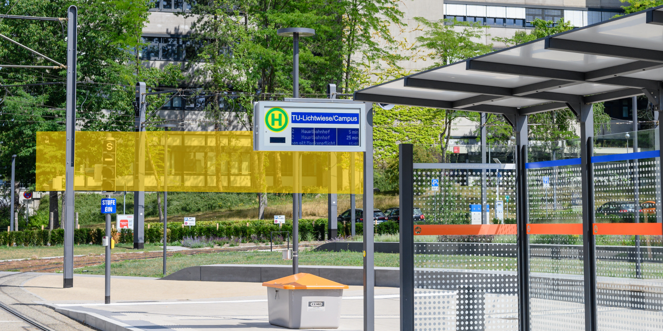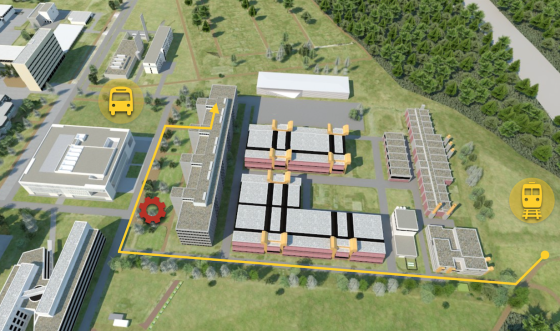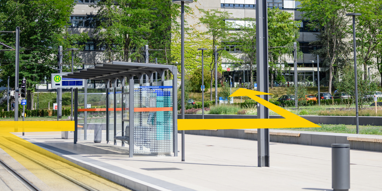 The quickest way to find us is to use the entrance in the direction of the Lichtwiesenbahn stop (marked as the yellow entrance in the picture). The entrance to the MechCenter is then on your left.