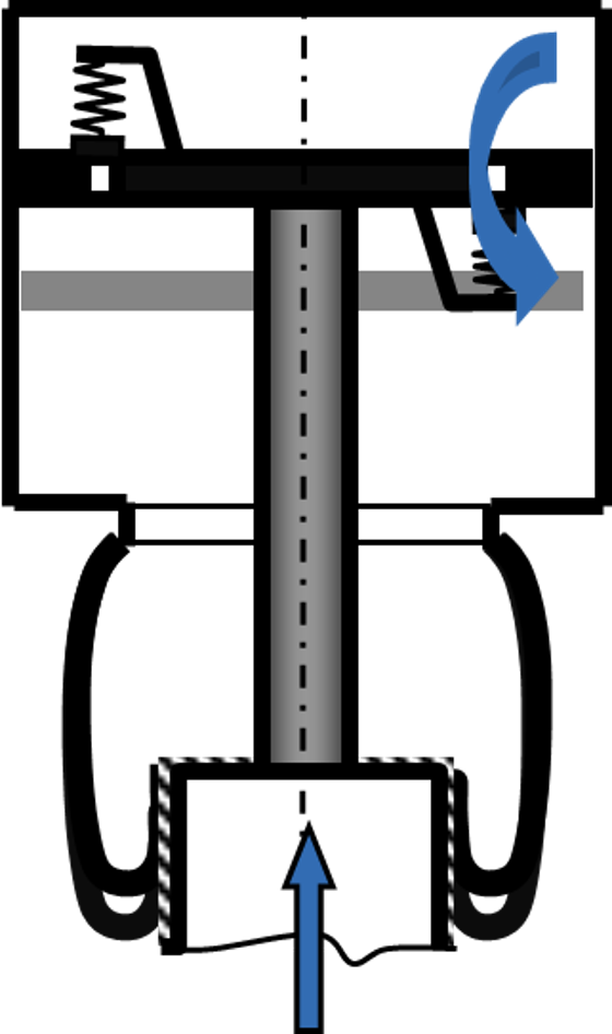 Im Luftfederdämpfer (LFD) sind Feder- und Dämpferwirkung in einem Bauteil integriert und deren Funktion gekoppelt: Beim LFD sind mindestens zwei Luftvolumina voneinander getrennt, siehe Abbildung 1. Beim Einfedern verringert sich das Gesamtvolumen des Bauteils. Die eingeschlossene Luft wird komprimiert und ist als Feder wirksam. Werden die beiden Volumina nicht gleichmäßig komprimiert kommt es zu einem Druckunterschied zwischen diesen. Durch das gezielte Verbinden mittels beispielsweise einer Drossel kommt es zu einer Ausgleichsströmung, welche Schwingungen dämpft.